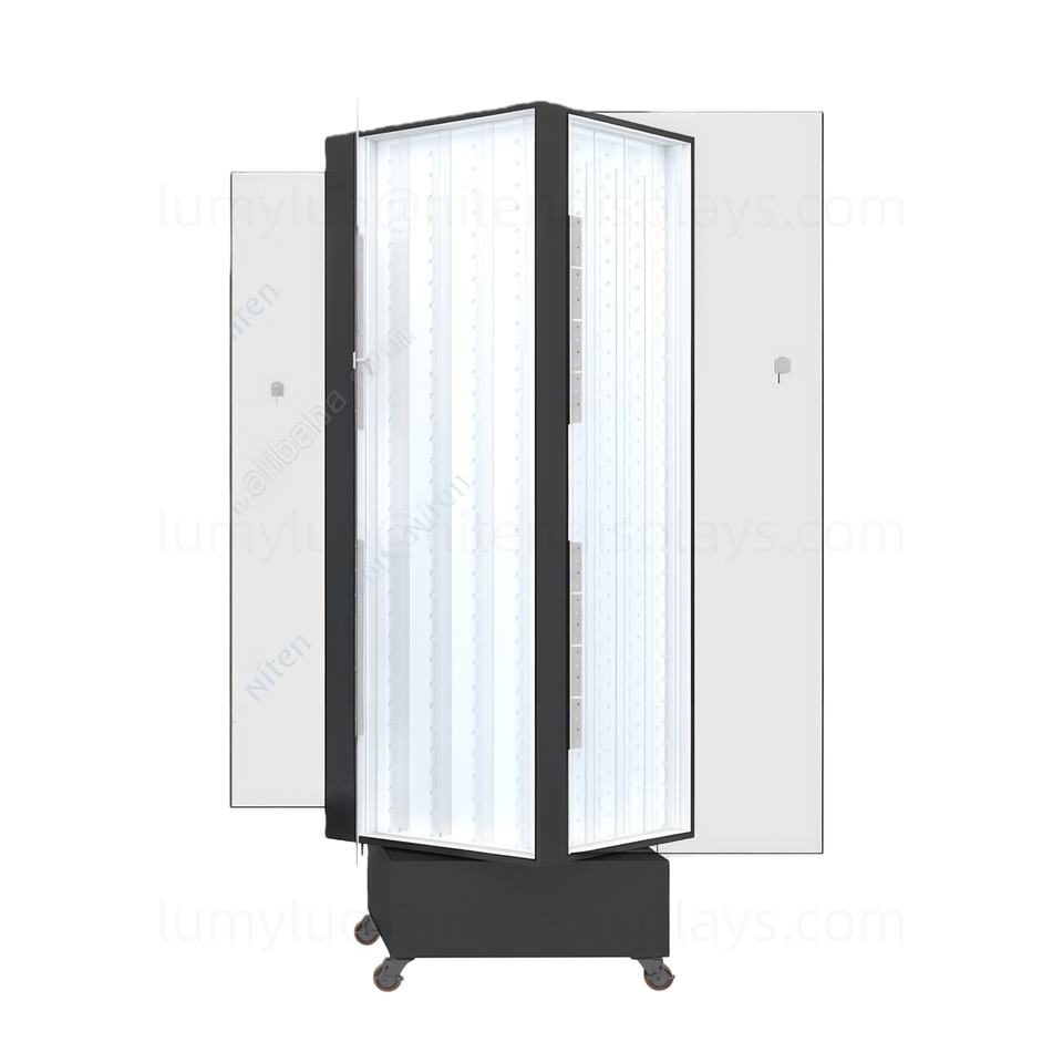 Vitrine rotative à 4 côtés avec lumières LED et serrure, porte en acrylique, présentoir sur pied en métal pour magasin d'armes et équipement tactique