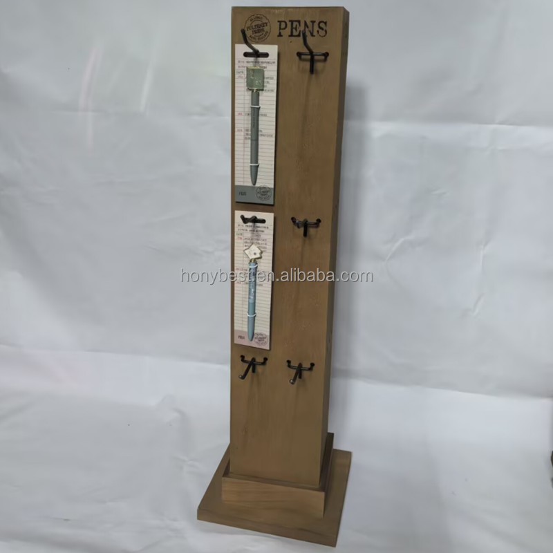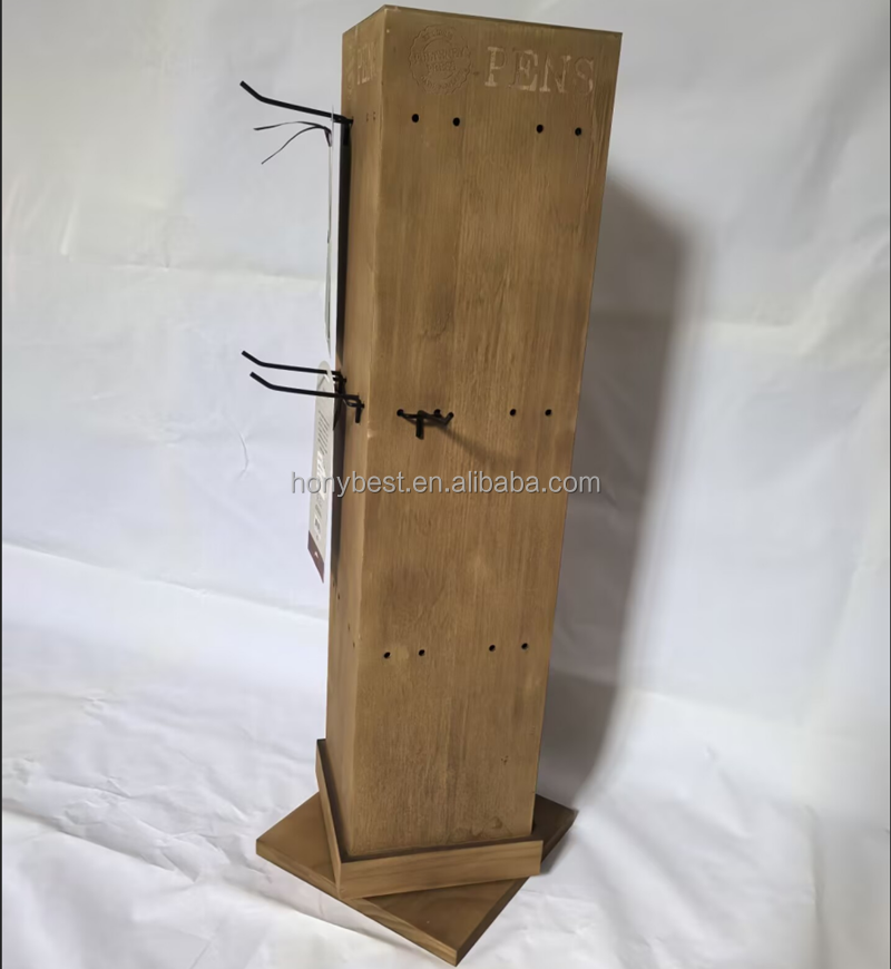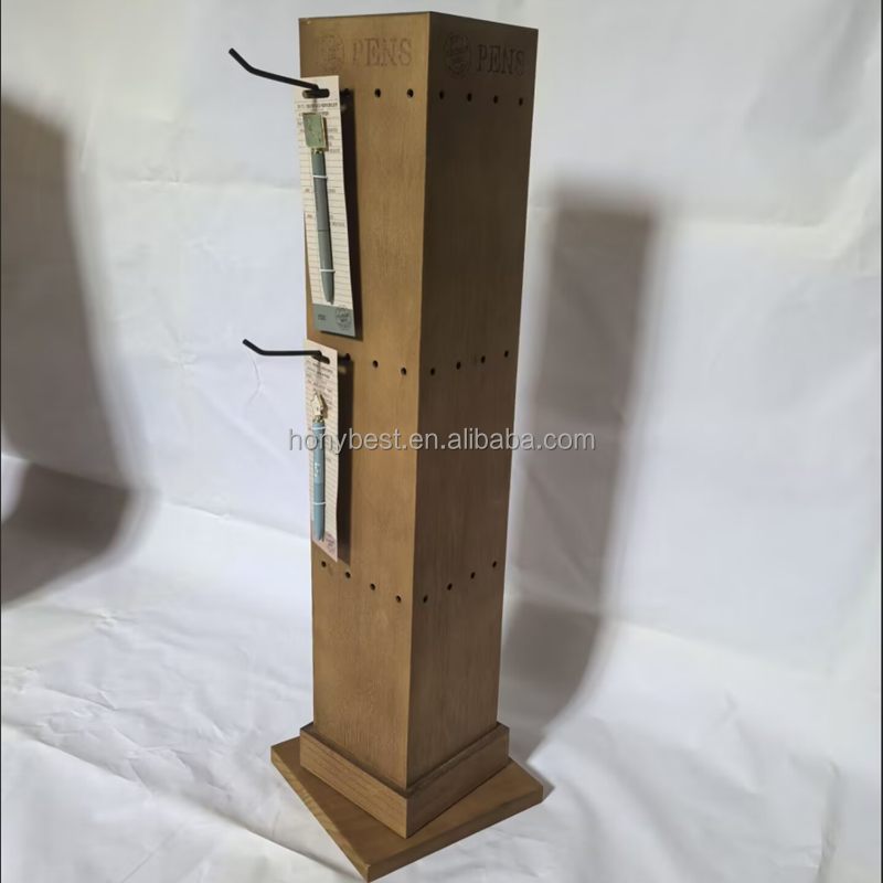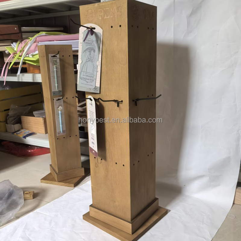 Support de présentation rotatif en bois massif à 4 côtés, 3 niveaux, avec 24 crochets amovibles pour la vente au détail, les salons professionnels, les vitrines