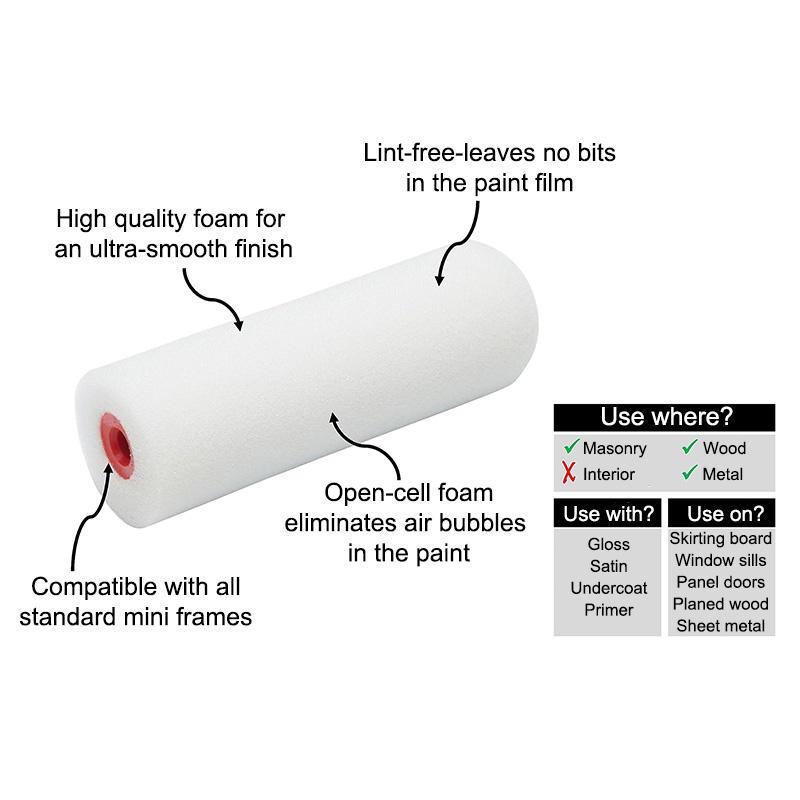 Rouleau à peinture miniature de 4 pouces, revêtement en mousse lisse de haute qualité, mini rouleau à peinture en polyamide, recharge