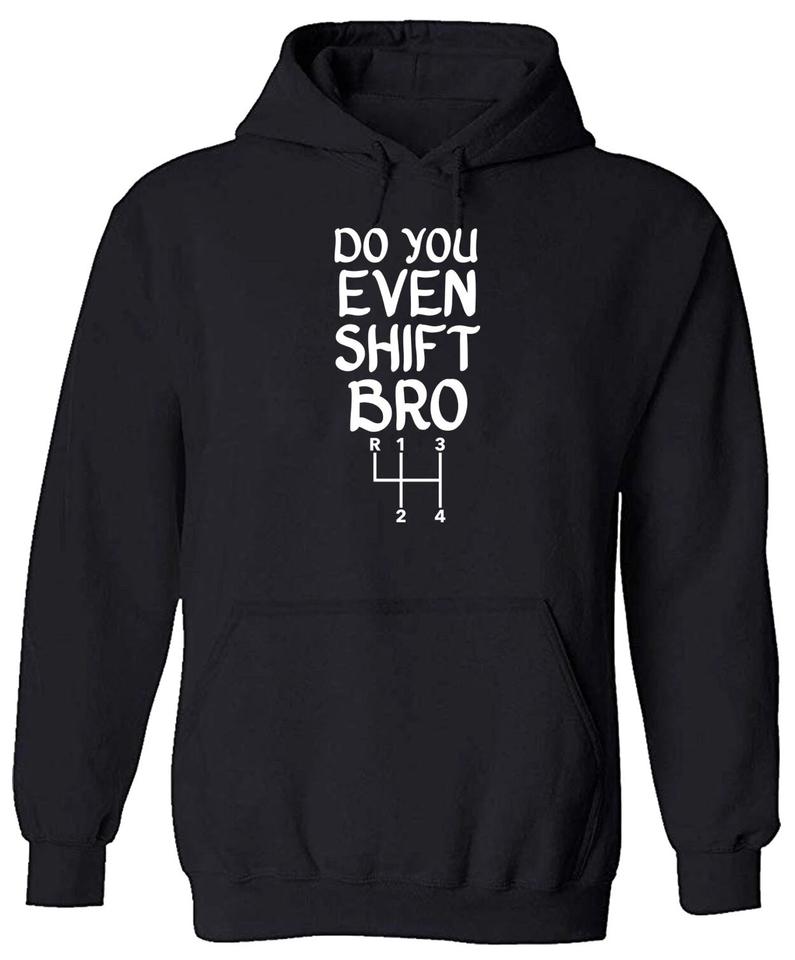 Sweat à capuche en molleton surdimensionné 100% coton brodé avec motif de changement de vitesse à 4 rapports, avec citations amusantes 'Do You Even Shift Bro' pour hommes