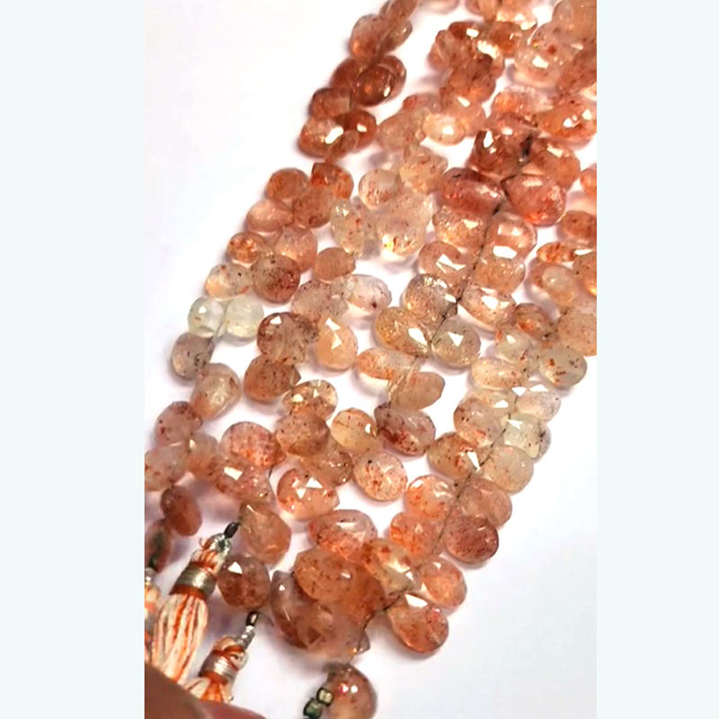 4 brins de perles à facettes en pierre de soleil naturelle 588 ct Lot 8 pouces de longueur Quartz Gemstone Tear Drop Briolette High Loose Beads Iroc