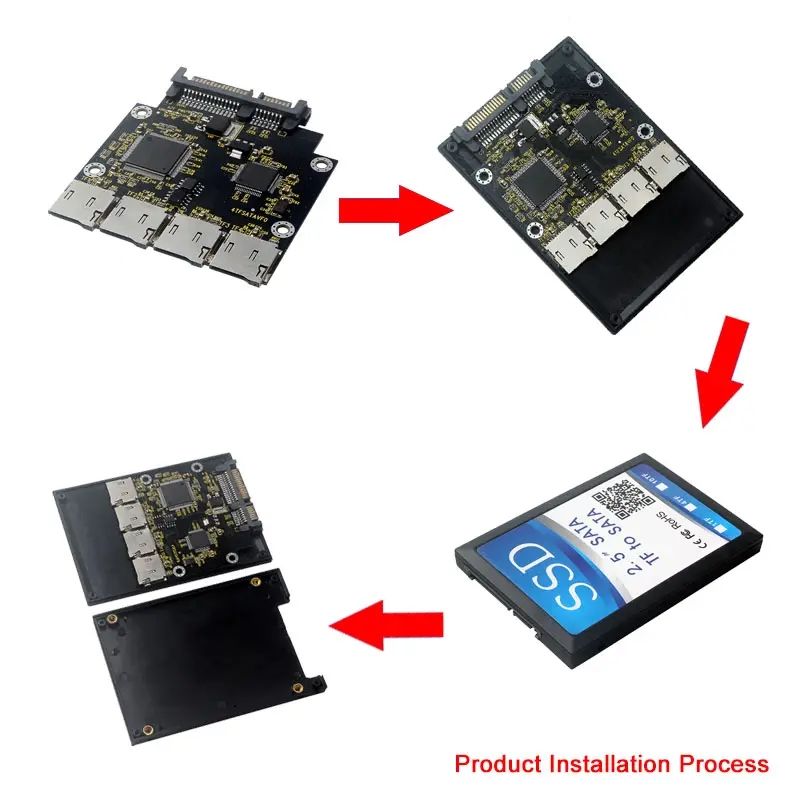 Adaptateur de carte TF 4 en 1 vers 22 broches, boîtier de disque dur 2,5 pouces avec RAID 0, convertisseur multi-cartes TF