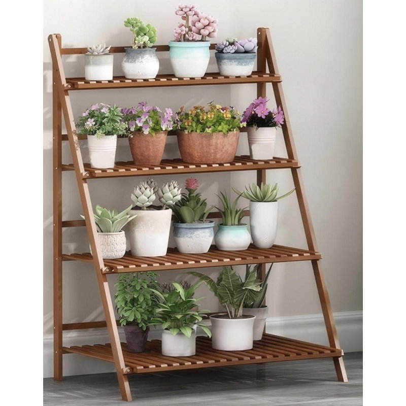 Présentoir à fleurs pliable en bambou à 4 niveaux pour plantes d'intérieur et d'extérieur Fourniture de jardin