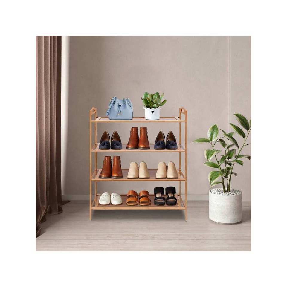 Étagère à chaussures en bambou à 4 niveaux Organisateur de rangement ouvert avec PP Autoportant Entrée Couloir Placard Porte-chaussures Design peu encombrant