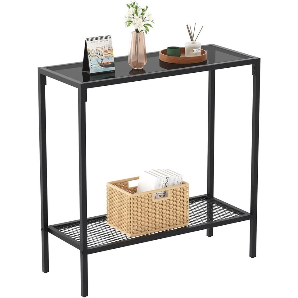 Table console en métal à 4 niveaux de couleur noire avec plateau en bois Design élégant pour l'entrée, le salon ou le couloir Déco