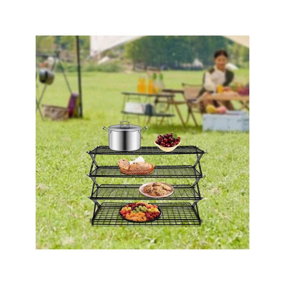 Grille de refroidissement pliable noire à 4 niveaux Grille de cuisson et de séchage pour la cuisson des biscuits Équipement de cuisson pliable peu encombrant
