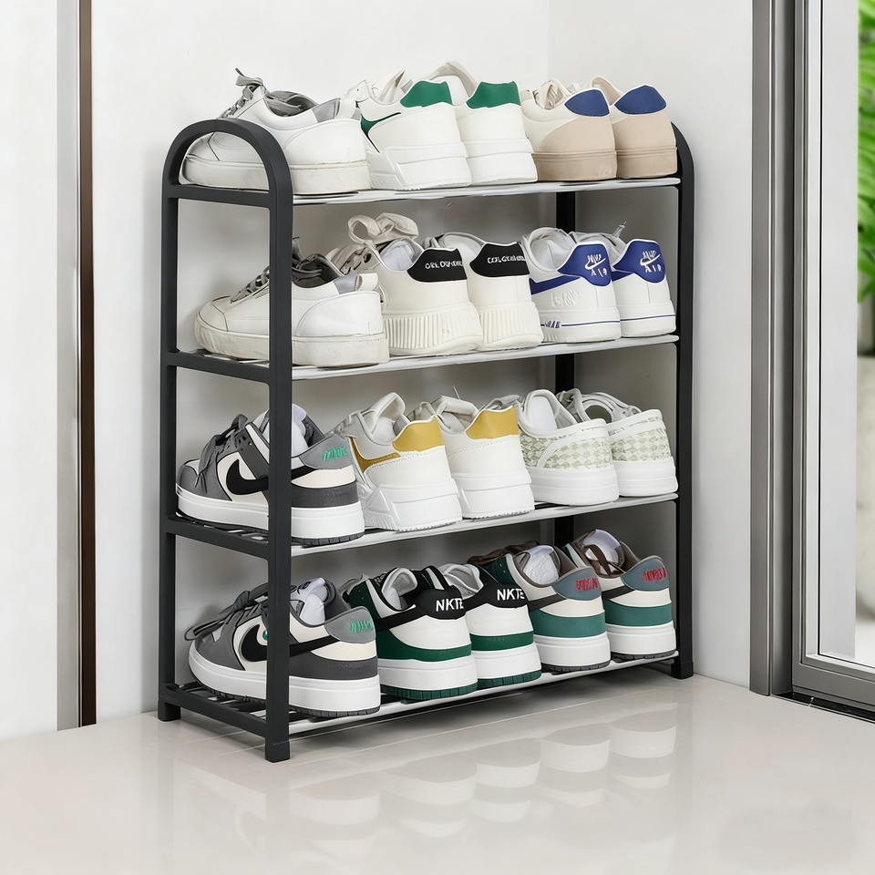 Étagère à chaussures autoportante à 4 niveaux en acier galvanisé antirouille, organisateur de chaussures pour entrée, idéal pour les petits espaces