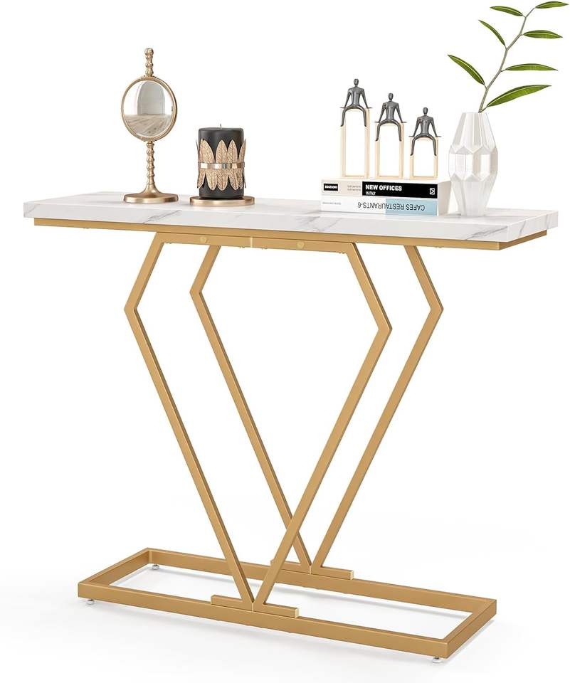 Table console moderne en métal à 4 niveaux, couleur or, dessus en marbre blanc, entrée ou couloir élégant avec cadre robuste