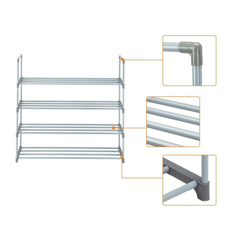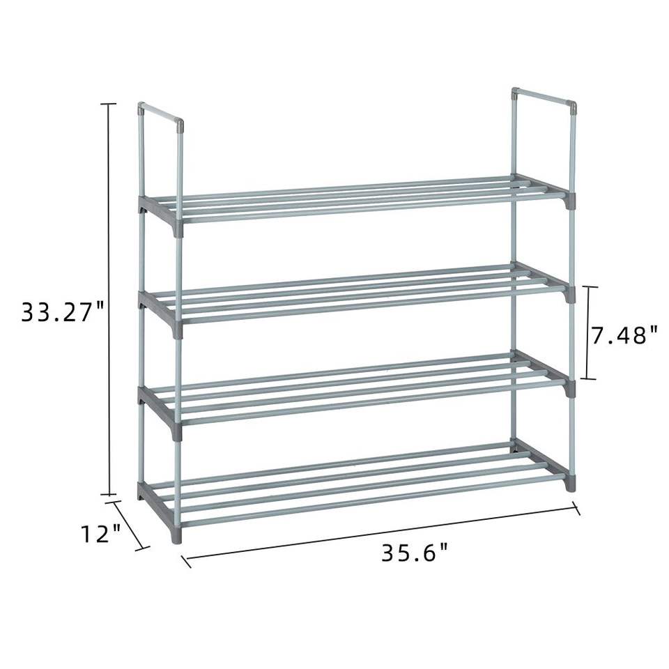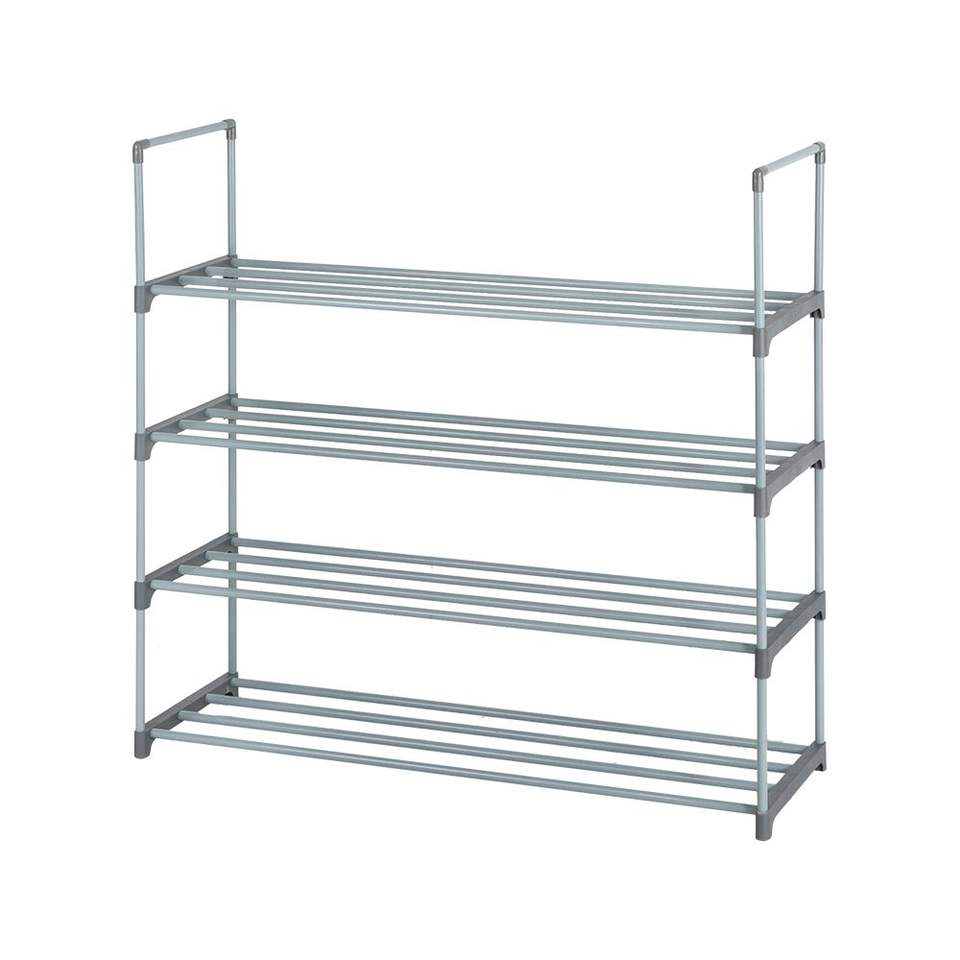 Étagère à chaussures grise à 4 niveaux pour chambre, entrée et couloir, organisateur de rangement pour placard