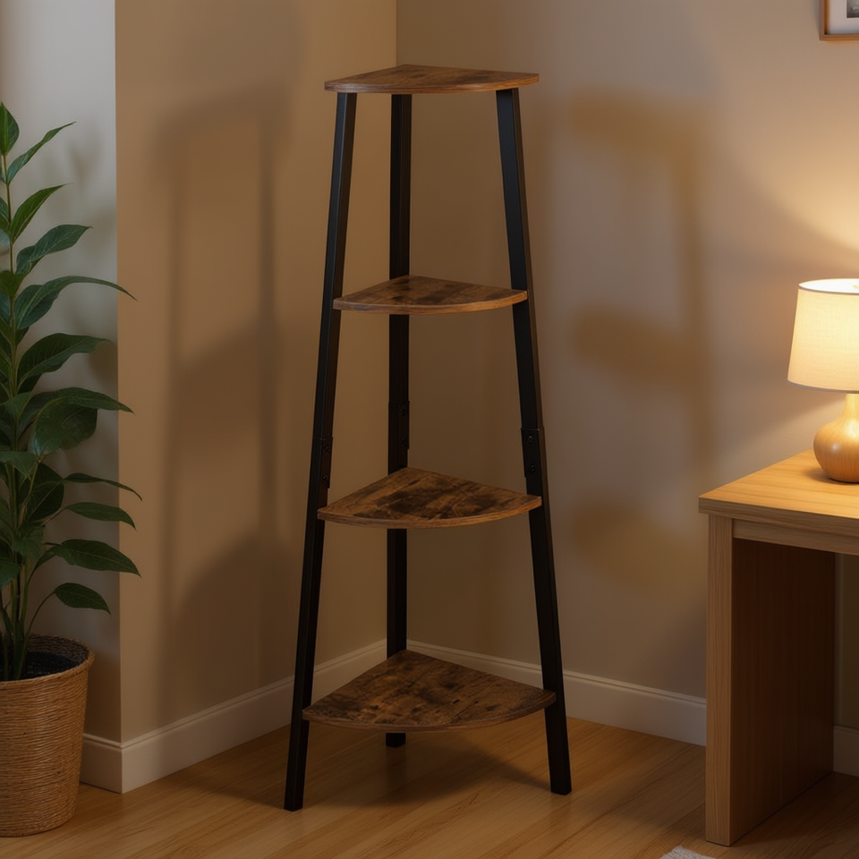 Étagère d'angle industrielle en métal à 4 niveaux, durable, pour le rangement à la maison ou au bureau