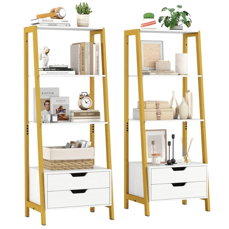 Étagère à 4 niveaux avec 2 tiroirs, étagère de présentation moderne, structure en métal robuste, pour la maison, le bureau, le salon, en solde