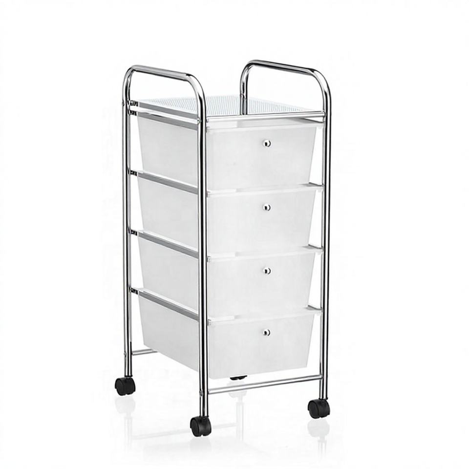 Chariot de rangement à roulettes en métal à 4 niveaux pour les outils de nettoyage de la salle de bain, meubles de maison
