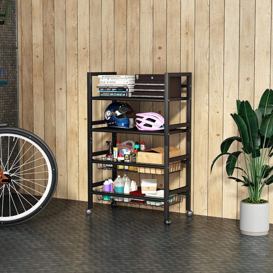 4-Tier Metal Rolling Cart Kitchen Microwave Storage Rack with Removable Grid Shelves for Kitchen, Bathroom, Office Storage