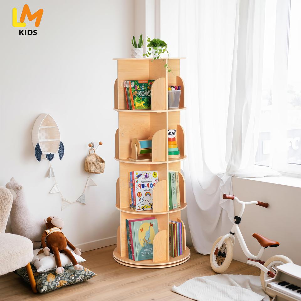 Étagère à livres moderne à 4 niveaux, petite, d'angle, sur pied, en bois, à colonne unique, pour étudiants, maternelle, salle de classe, maison