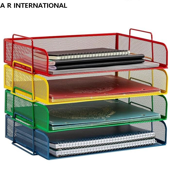 Organisateur de bureau en métal à mailles réglable et portable à 4 niveaux empilables pour le rangement de documents dans la salle de classe, l'école ou le bureau