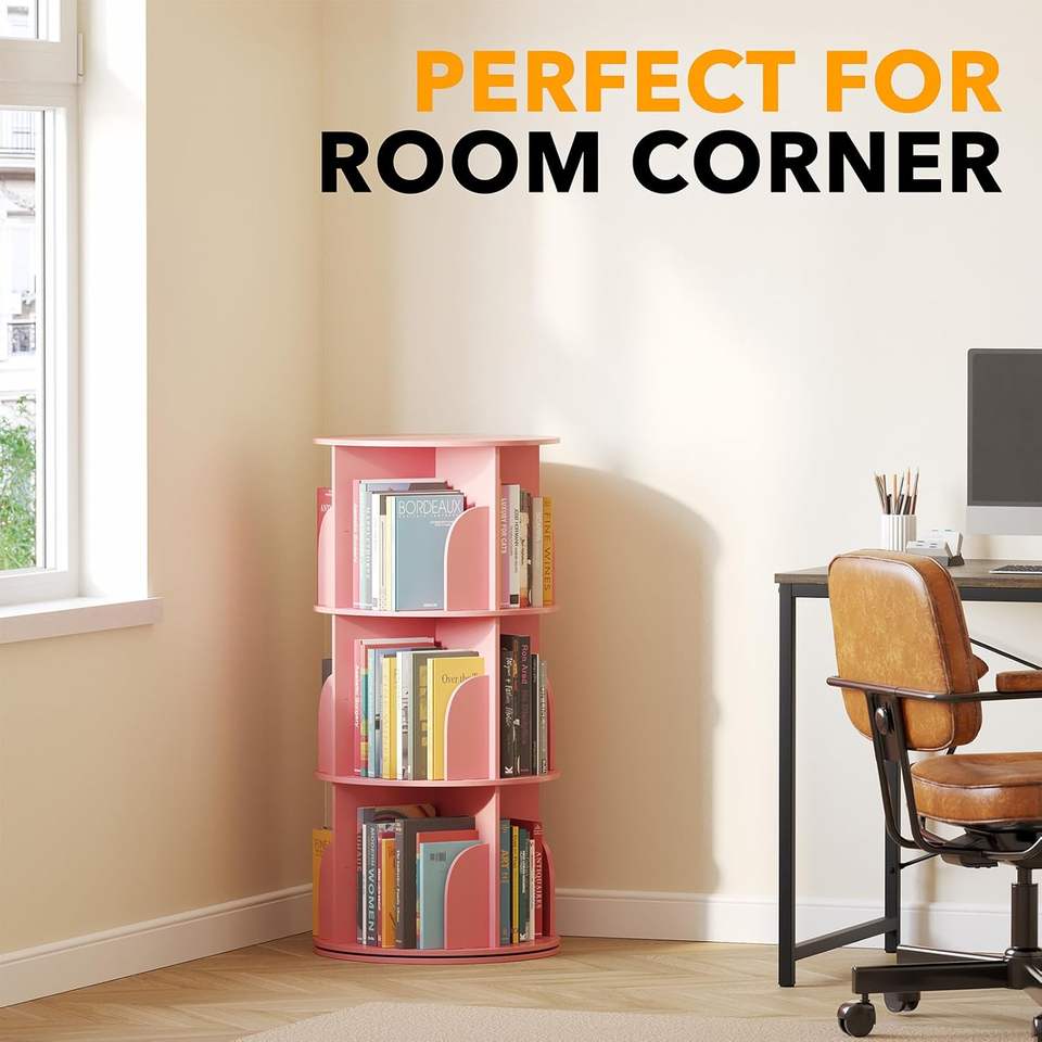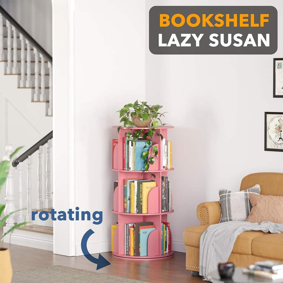 Tour d'étagère rotative blanche à 4 niveaux Bibliothèque paresseuse tournante à 360 ° Carrousel de rangement tournant à la verticale