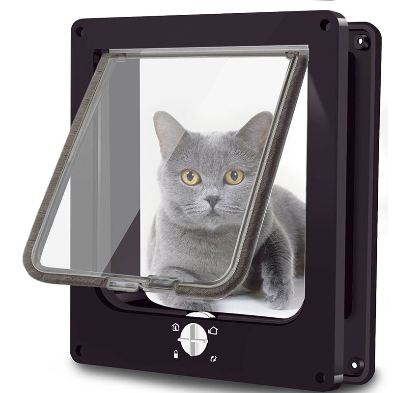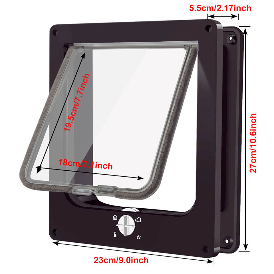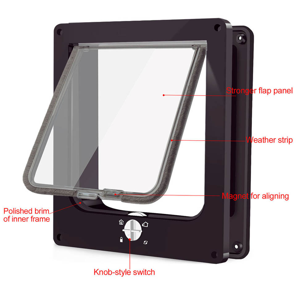 Porte pour animaux de compagnie à 4 voies avec fermeture sécurisée, pour portes et fenêtres intérieures et extérieures, installation facile, entrée pour animaux de compagnie avec volet transparent