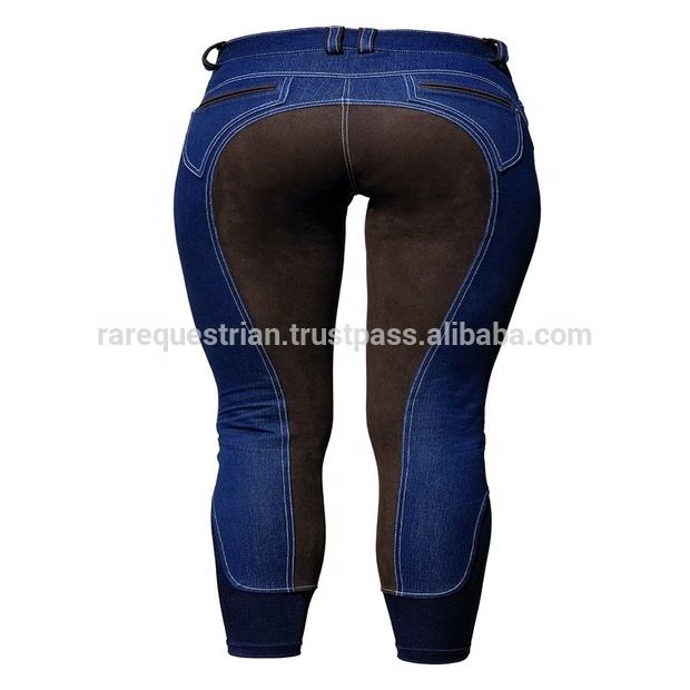 Pantalon d'équitation en denim extensible 4 directions, culotte intégrale