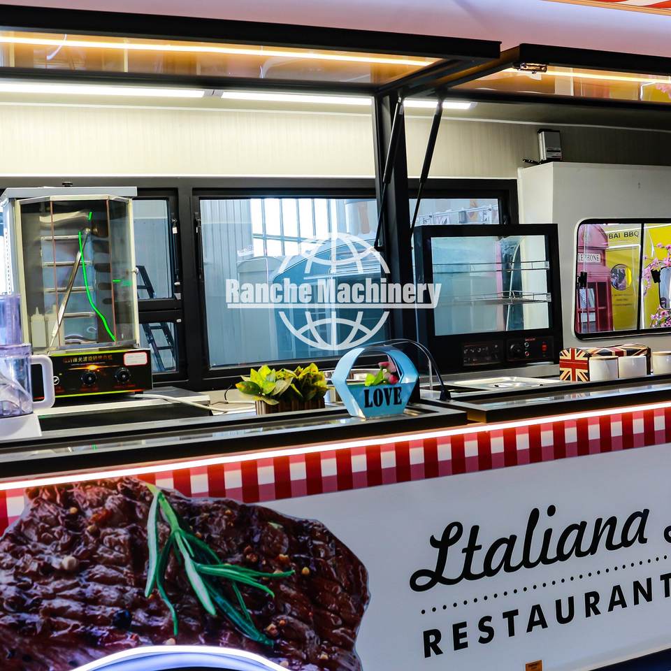 Camion de restauration mobile à 4 roues, cuisine mobile, restauration rapide, pizza, café, glaces, barbecue, kebab