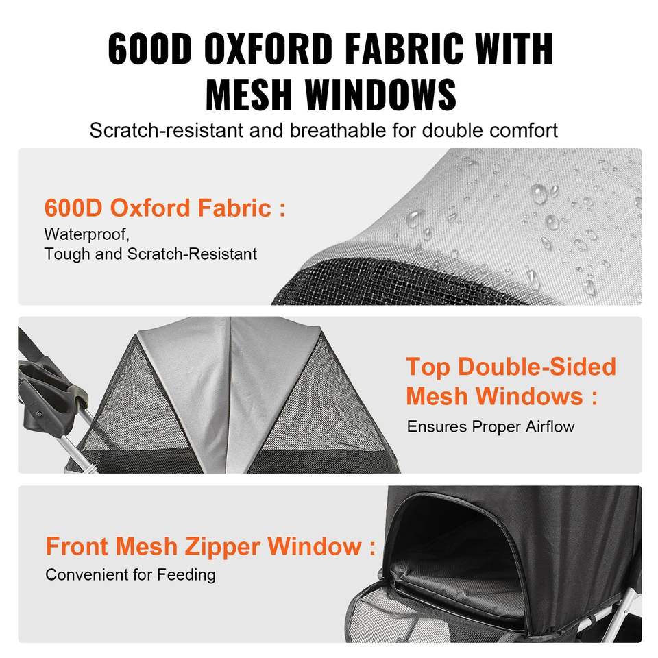 Poussette pour animaux de compagnie à 4 roues avec freins rotatifs, capacité de 35 lb, porte-chiot amovible, rangement pour chiens