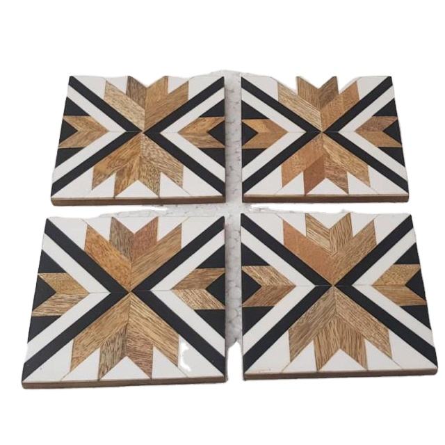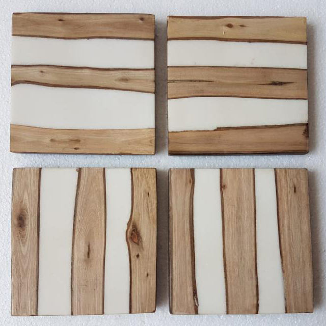 Dessous de verre en résine et bois de 4x4 pouces Dessous de verre en résine et bois au design unique Ensemble de 4 pièces Dessous de verre en marbre Dessous de verre en résine direct