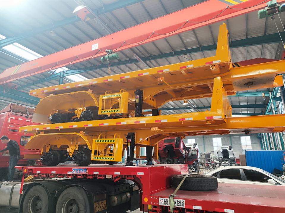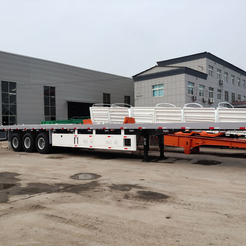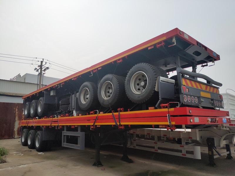 Semi-remorque à plateau plat 4 essieux pour le transport de conteneurs, personnalisable avec un plateau bleu