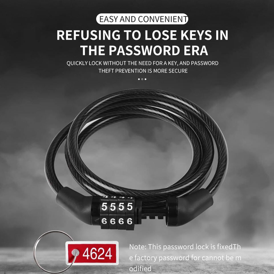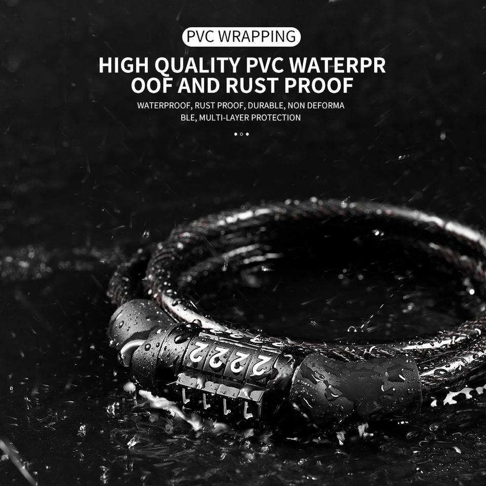 Cadenas à Combinaison à 4 Chiffres Étanche Antivol avec Câble Personnalisé pour Vélo, Antivol de Roue de Vélo