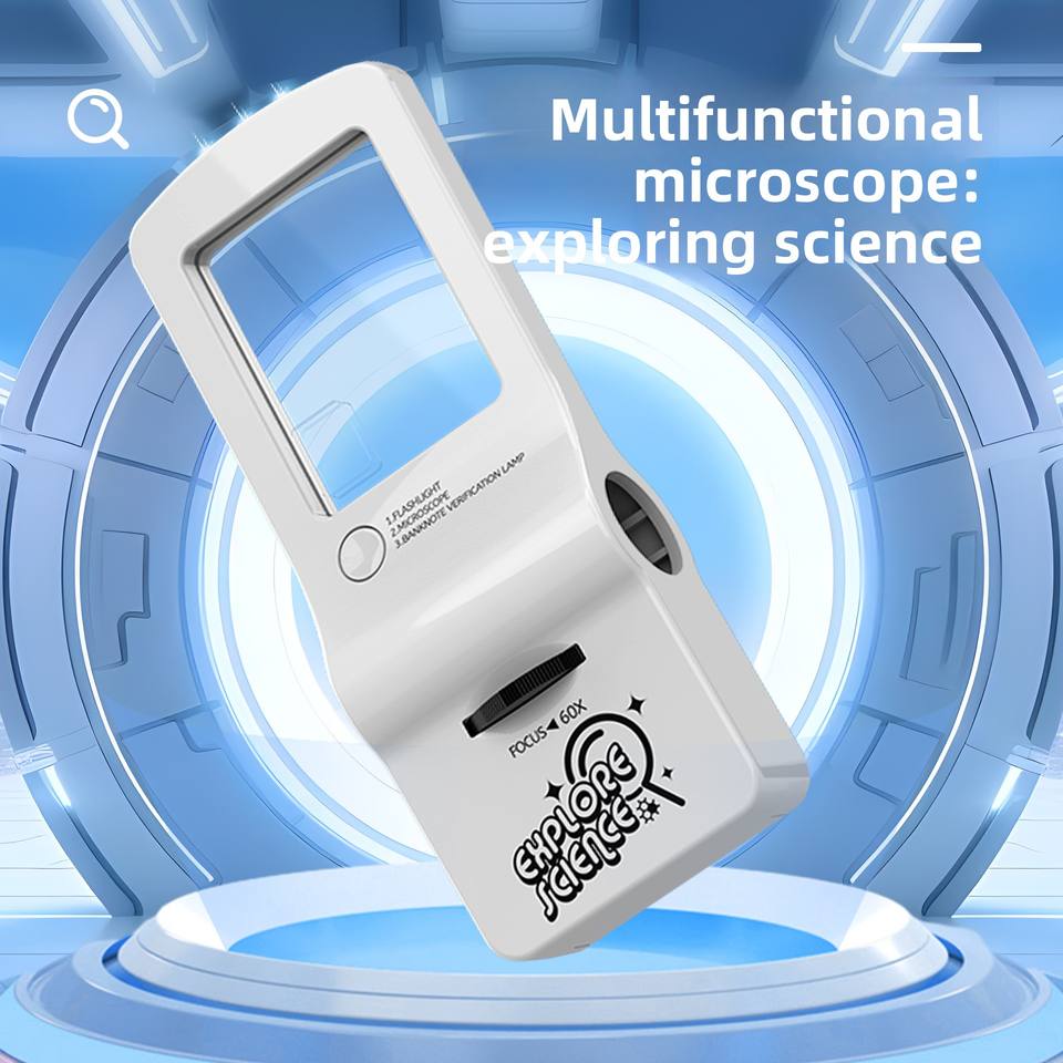 Microscope pour enfants 4 en 1, loupe, lumière UV, détecteur d'argent, mini microscope portable pour l'éducation scientifique en plein air