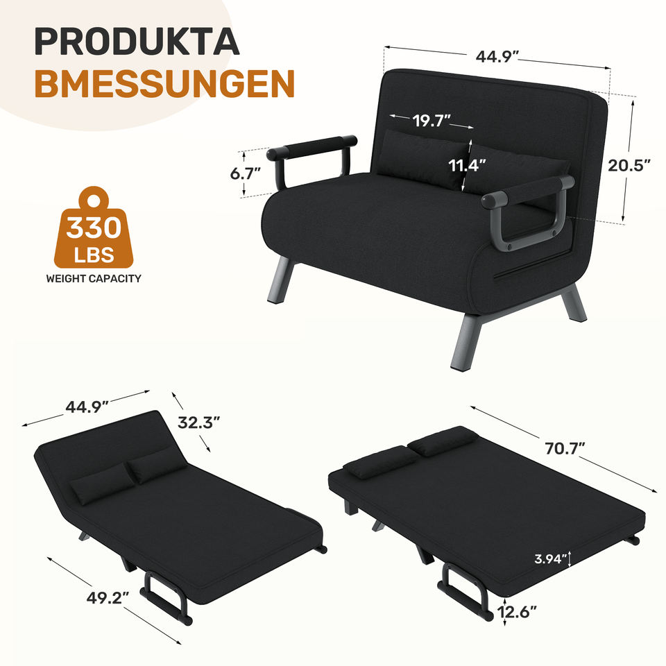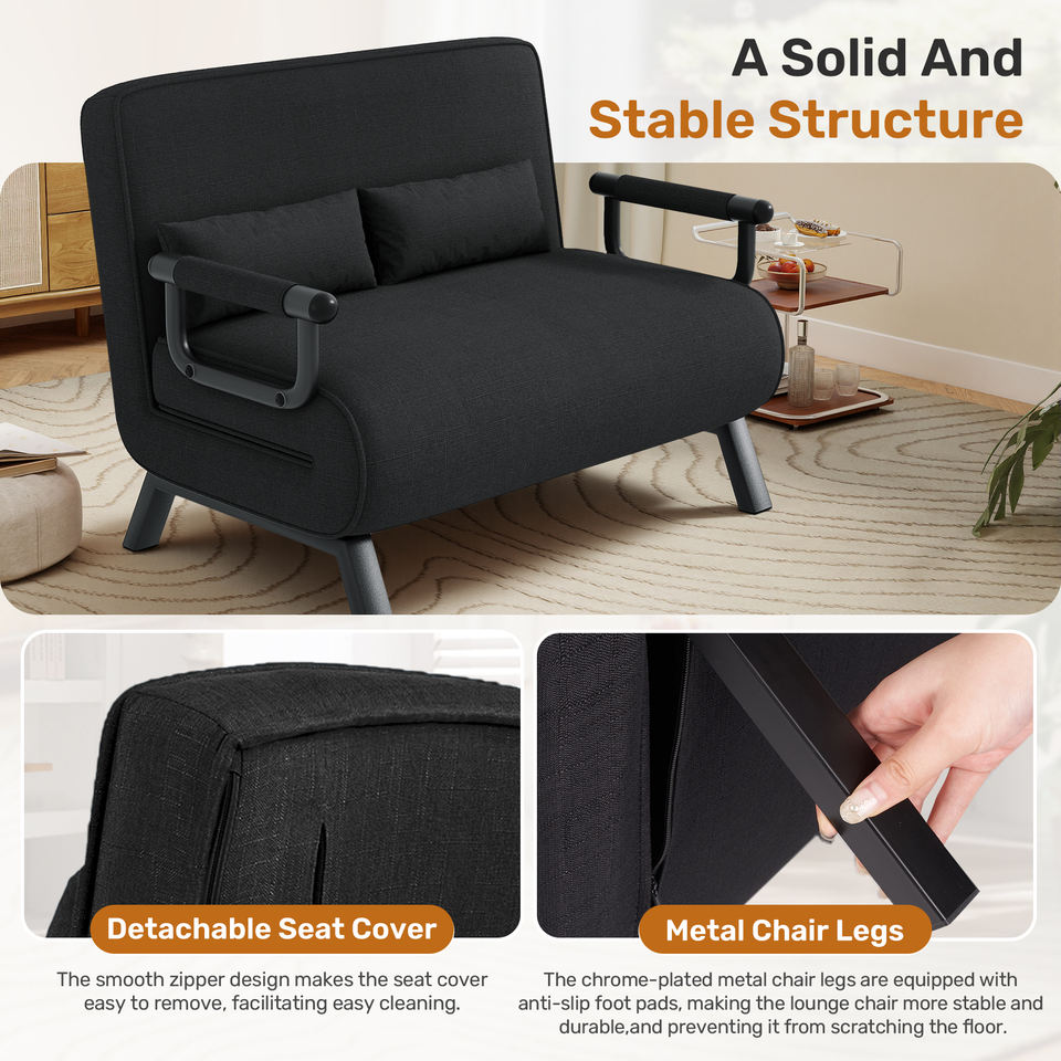 Fauteuil de salon convertible multifonctionnel 4-en-1, pliable, avec dossier réglable, convertible en canapé-lit, pour chambre à coucher, appartement, utilisation en extérieur