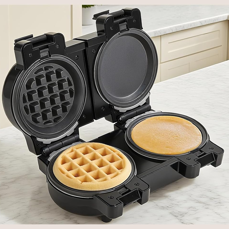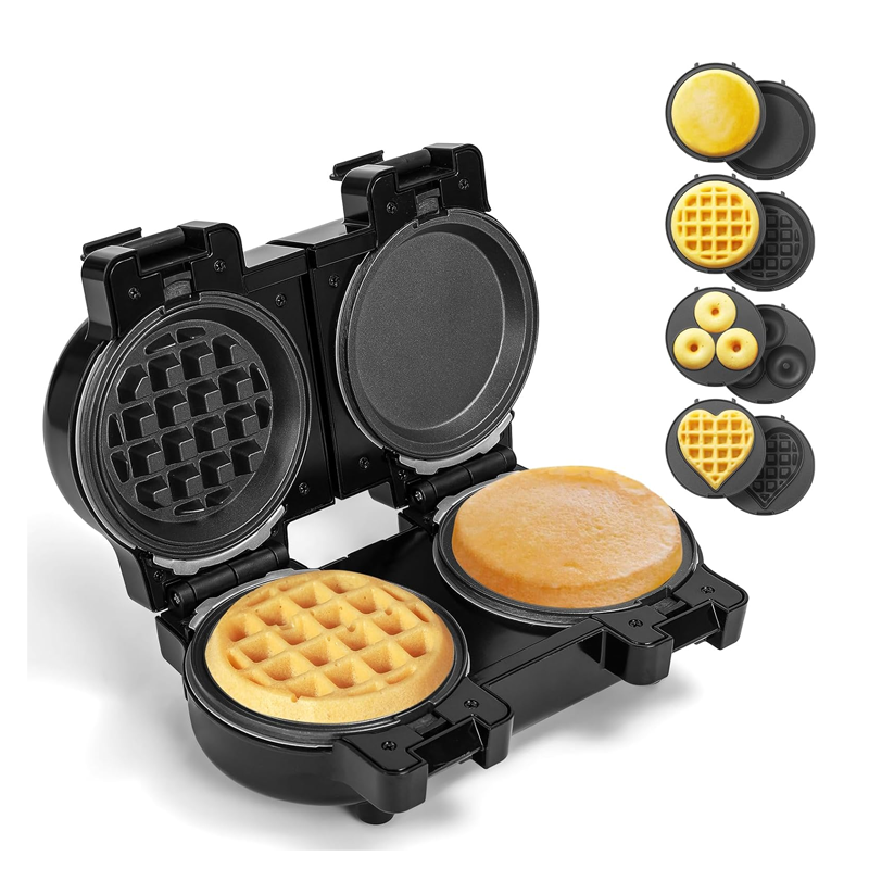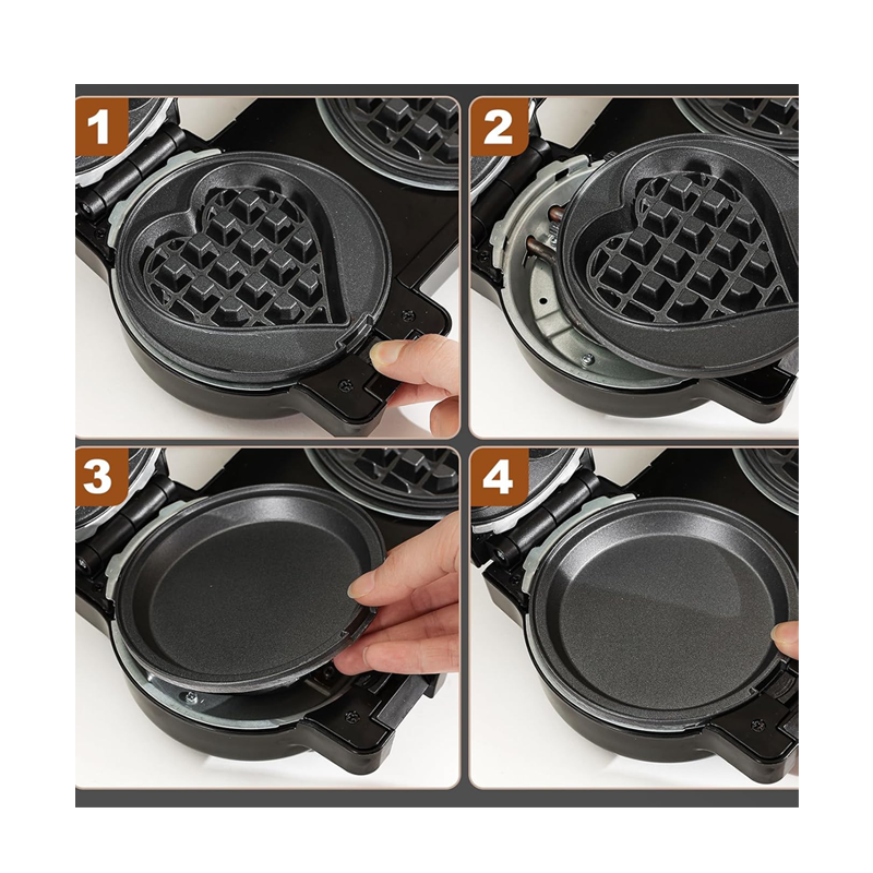 Mini gaufrier double 4 en 1 avec 8 assiettes amovibles, gaufre en forme de cœur, crêpe, beignet, gaufrier de 5 pouces pour enfants, familles