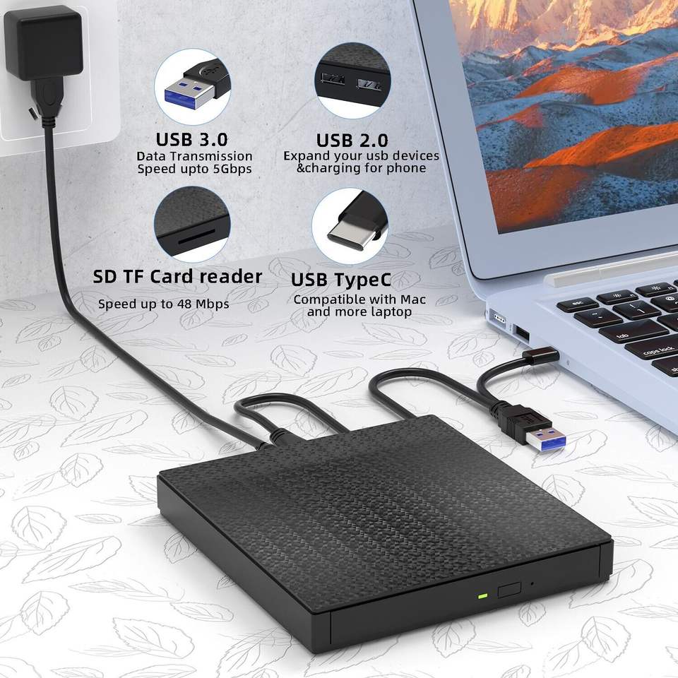Lecteur de CD/DVD externe 4 en 1 USB 3.0 Lecteur de DVD Graveur de CD/DVD portable Lecteur de CD ROM pour ordinateur portable PC Mac pour ordinateur de bureau