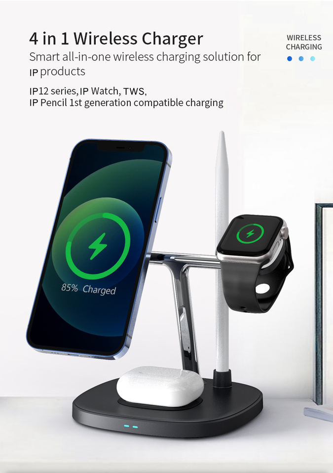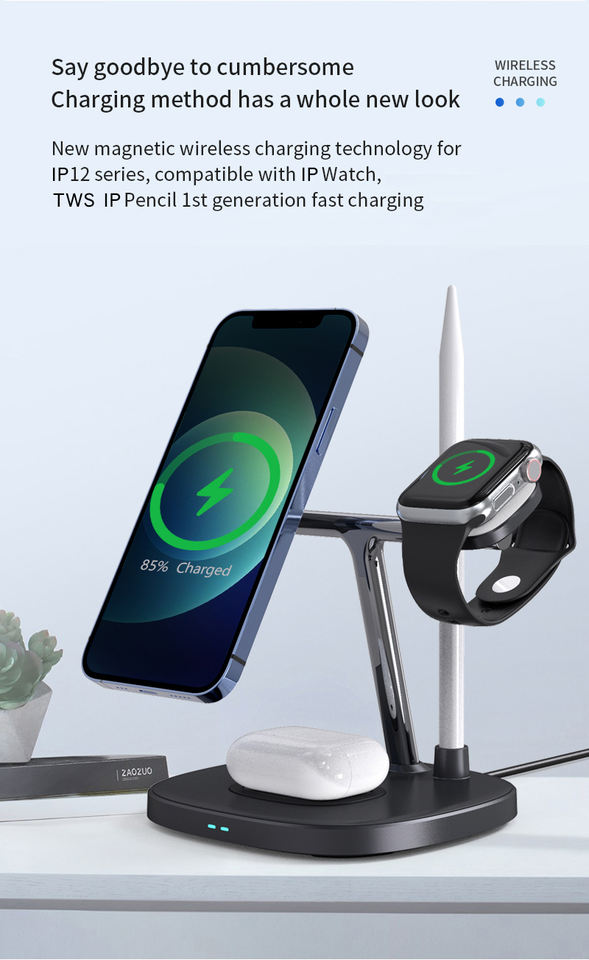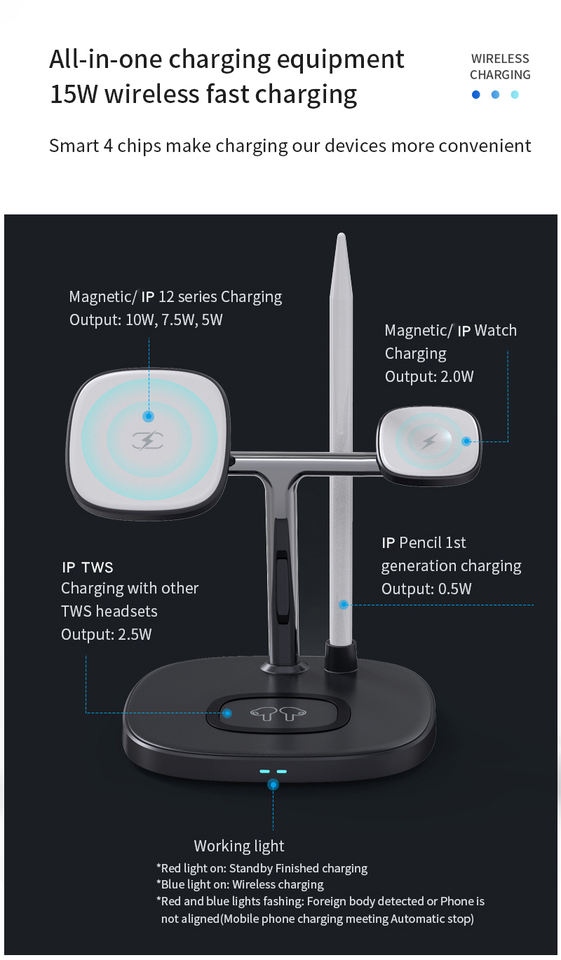 Station de chargement magnétique rapide 4 en 1 15W Dock Multi Wireless Charger For ip 12 Pro Max Apple Watch TWS