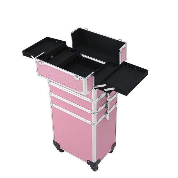 Trousse de maquillage roulante interchangeable 4-en-1 en aluminium, style barre de tirage en rose-Sacs et étuis à cosmétiques