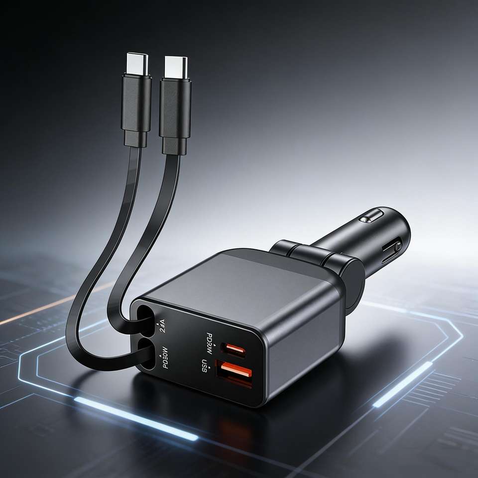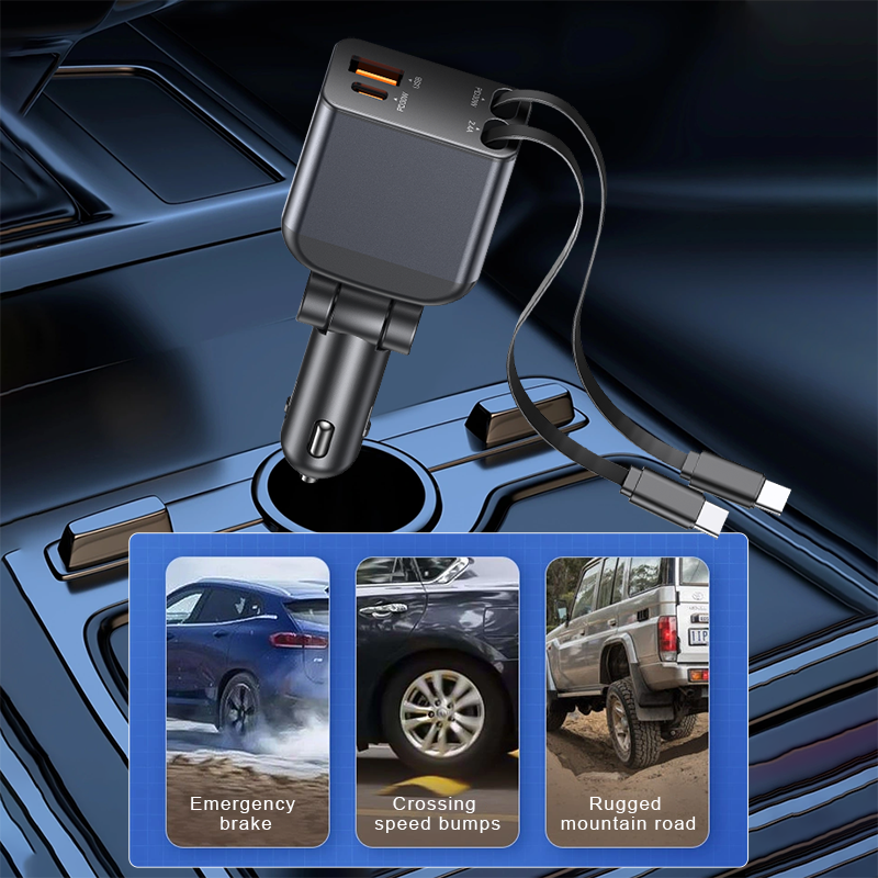 Chargeur de voiture 4 en 1 avec écran LED numérique, chargeur rapide 100W, station de charge pour téléphone, chargeur de voiture rétractable 4 en 1 USB