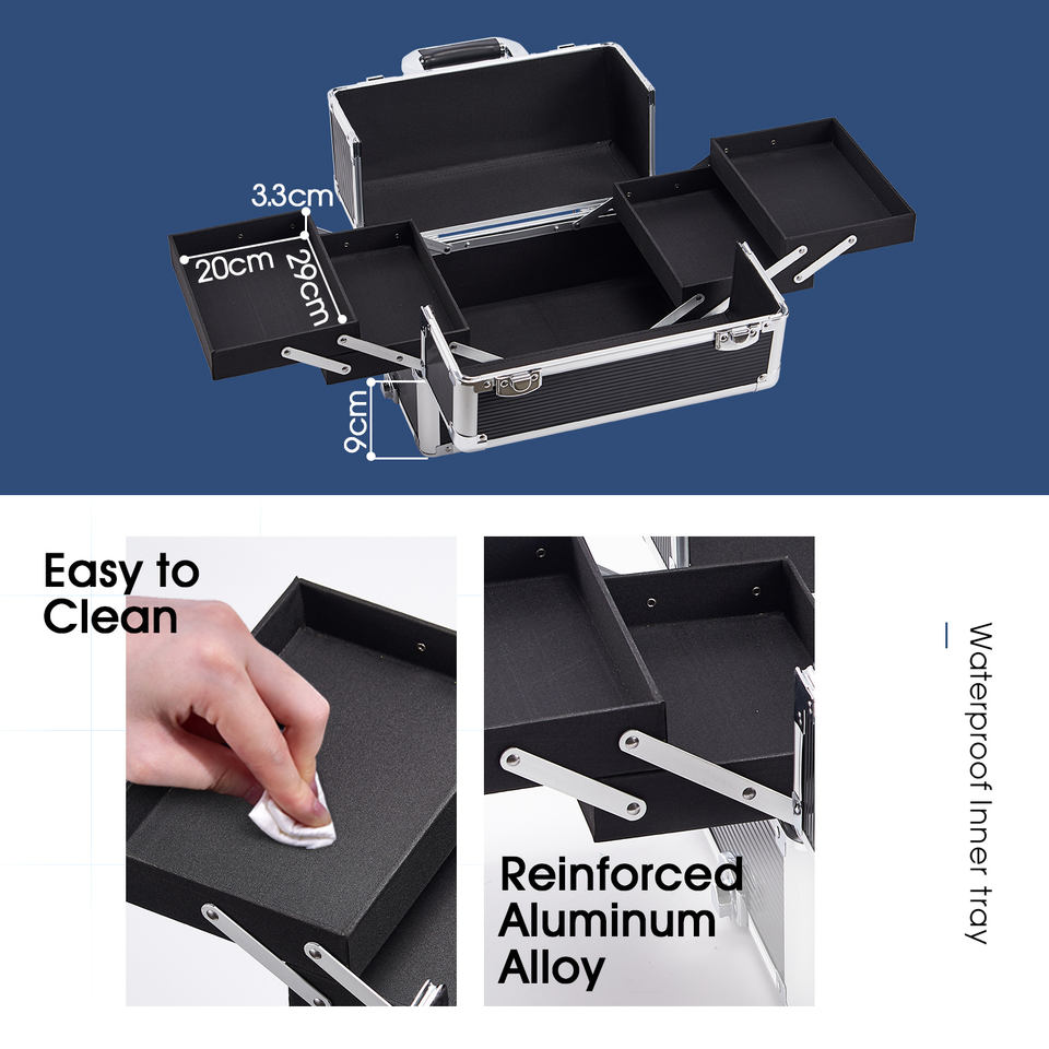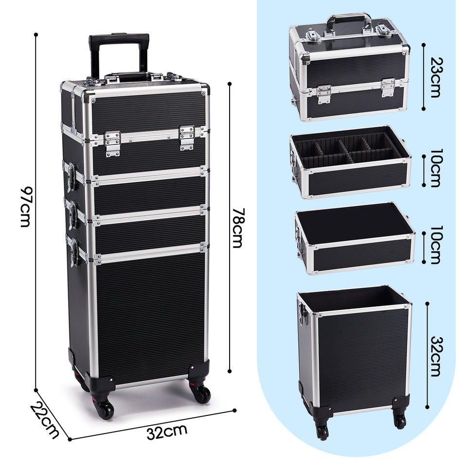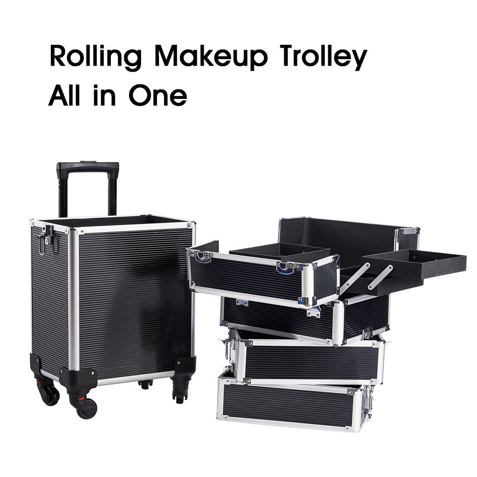 Valise de Maquillage Chariot Roulant 4-en-1 avec Tiroirs, Boîte de Rangement Cosmétique Professionnelle pour Coiffeur, avec Serrures