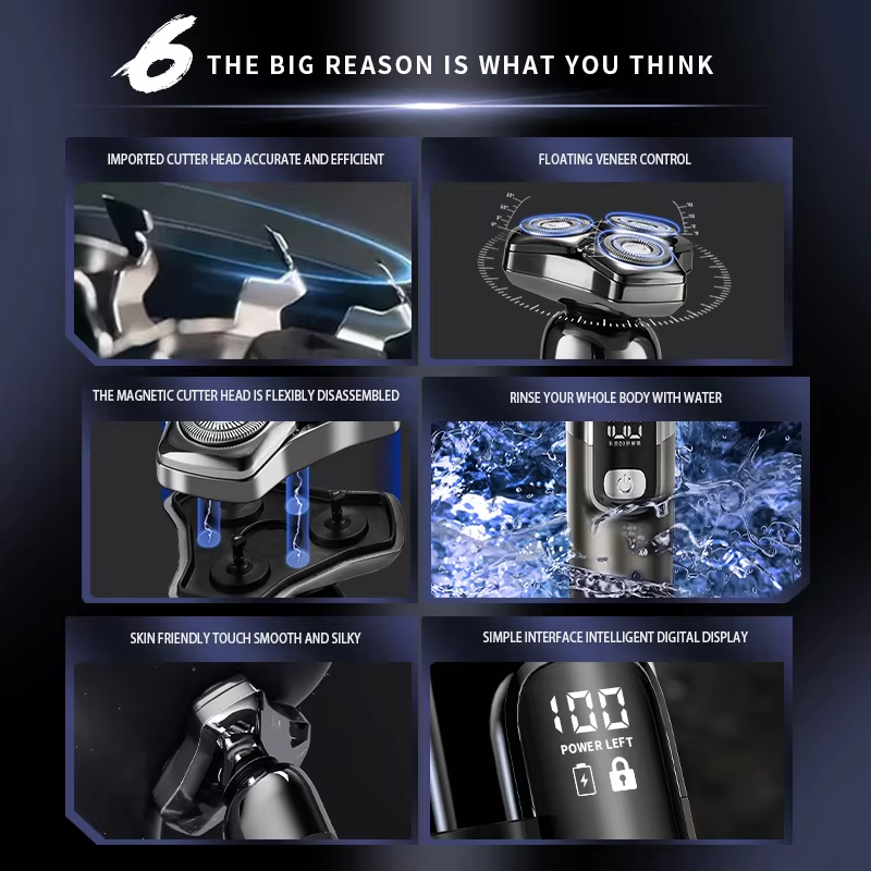 Rasoir rechargeable 4 en 1, lame flottante 3D, tondeuse à barbe, rasoir électrique pour homme, étanche, utilisation humide et sèche, visage, moustache
