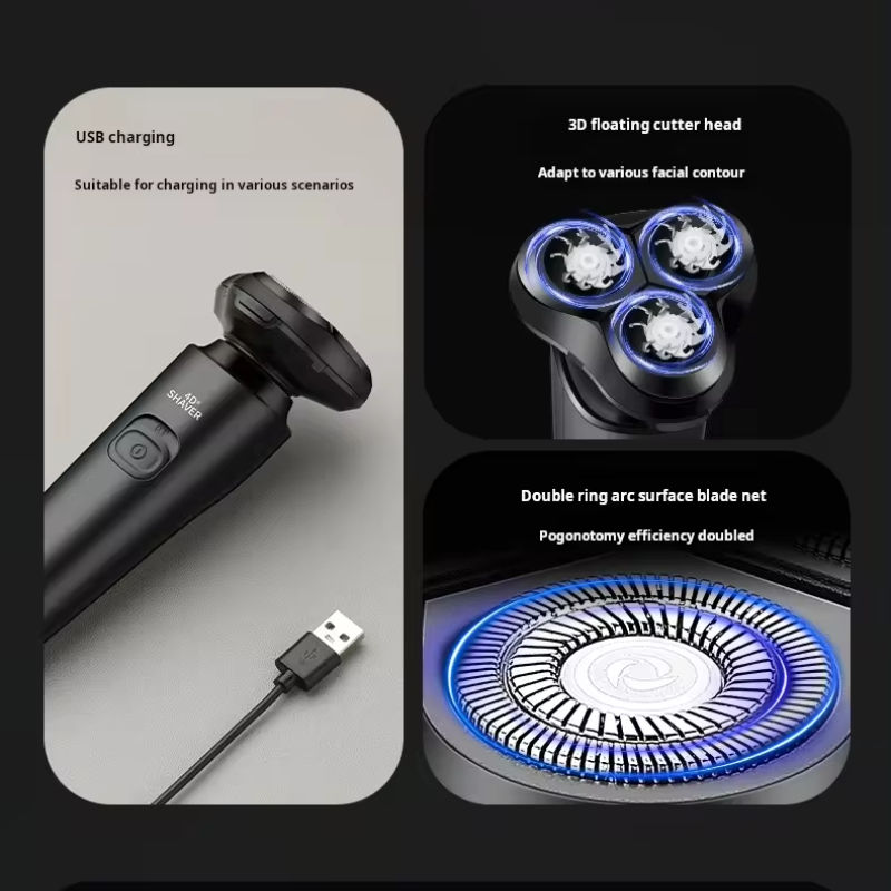 Rasoir électronique 4-en-1 étanche et rechargeable par USB pour hommes Tondeuse à barbe rotative Rasoir électrique pour le visage