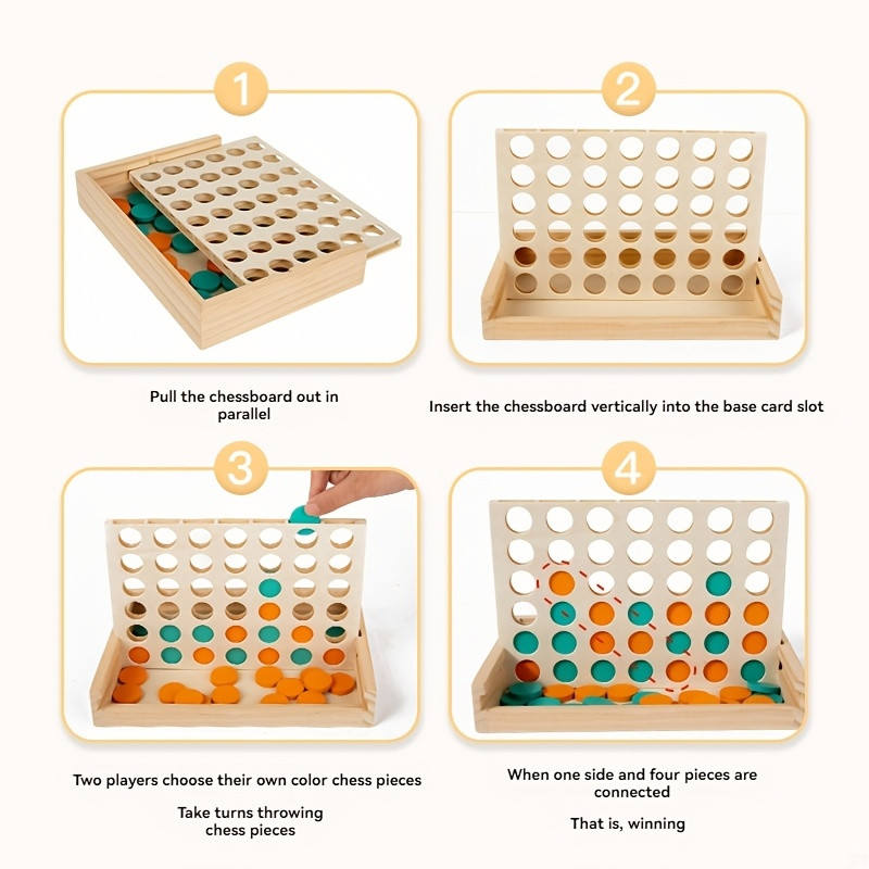 Jeu de société classique 4 en ligne en plastique et bois pour 2 joueurs, jouet éducatif et stratégique, idéal pour les voyages, pour enfants