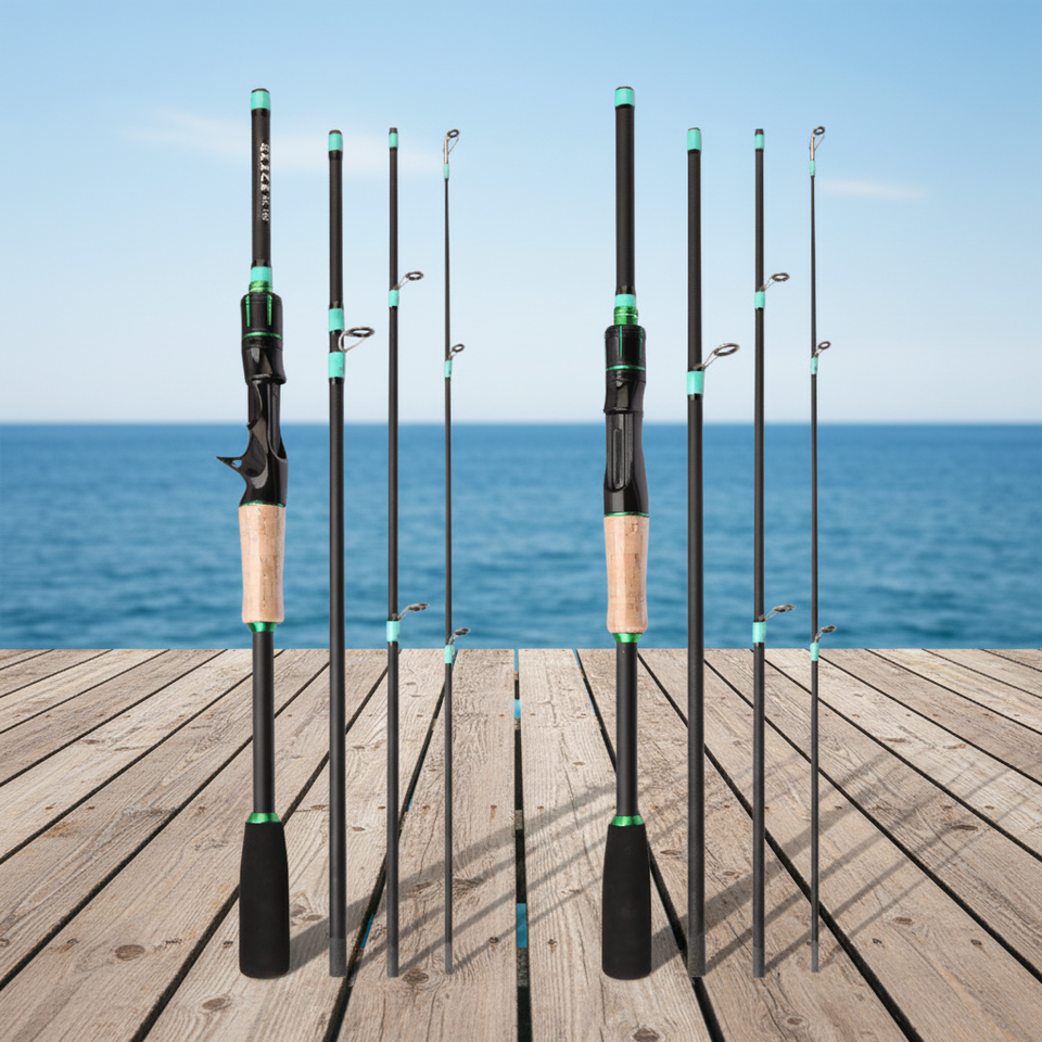 Canne à pêche en fibre de verre à 4 sections (1,6/2,1 m) avec poignée composite EVA pour la pêche au bar en mer, lancer et spinning, pêche en bateau océanique
