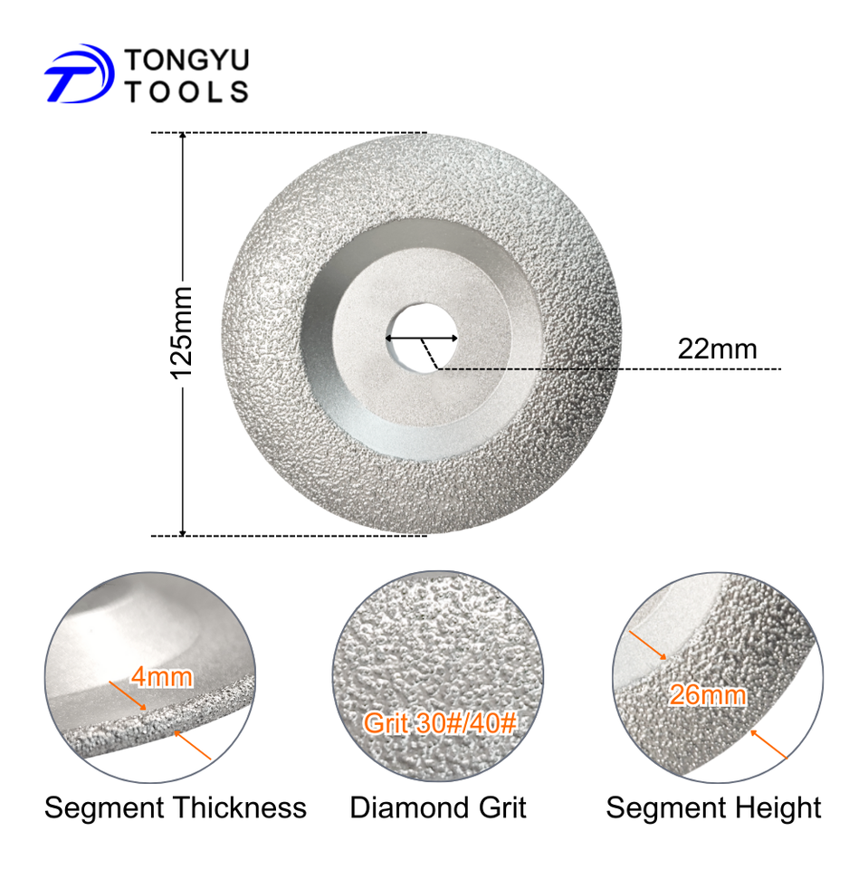 Meule à diamant à brasage sous vide de 4 à 5 pouces (125 mm, 115, 105) avec alésage de 7/8 pouces, grain 30/40 pour le meulage du métal, du béton et de la pierre