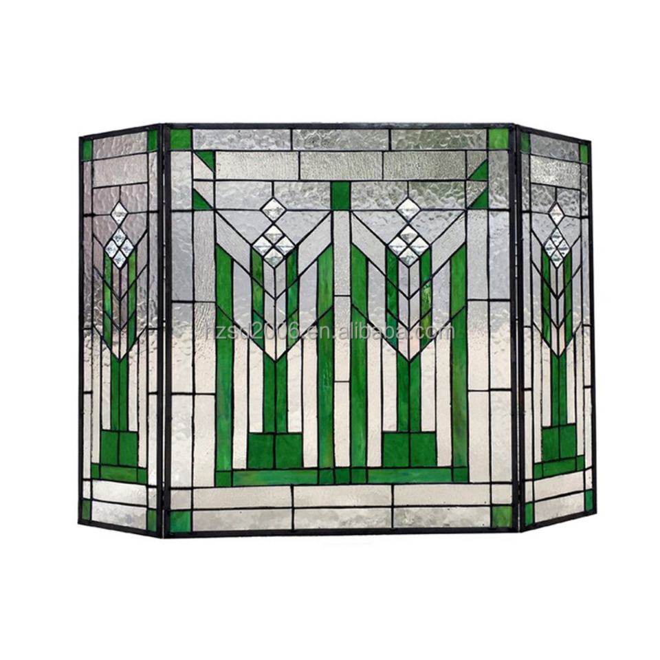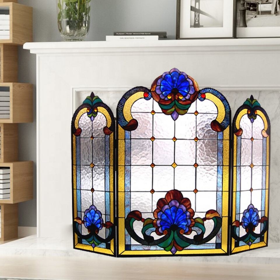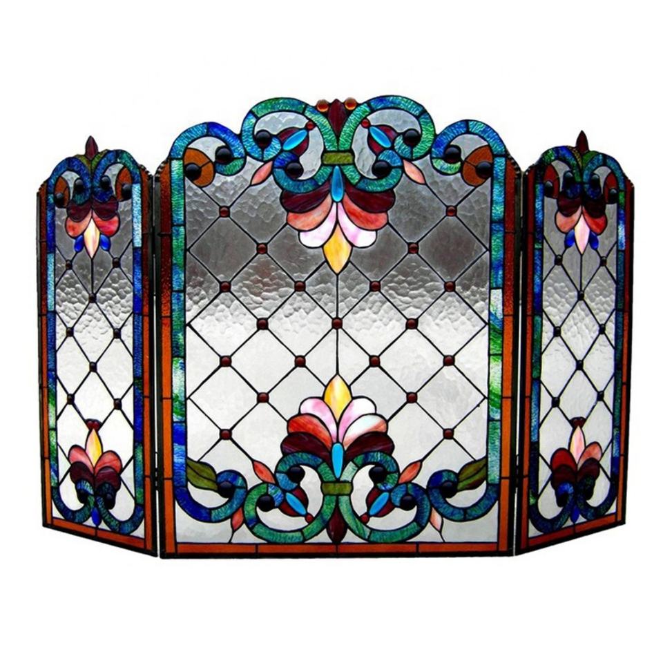 Écran de cheminée en verre artistique Tiffany style baroque 40''*28''