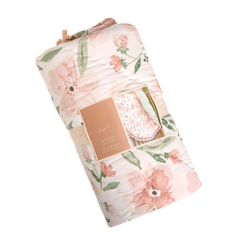Tapis de sol rembourré pour bébé 40 * 40 po, motif floral rose, tapis d'activités pour la crèche, tapis de sol matelassé pour le temps passé sur le ventre du bébé