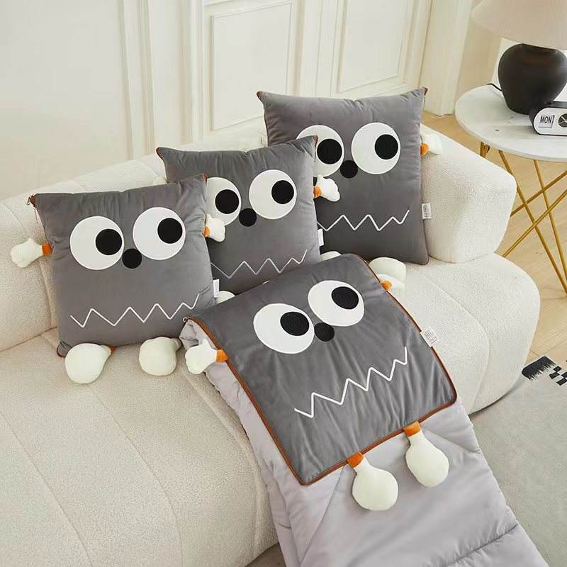 40*40cm tissu plié broderie grands yeux dessin animé figure détachable polyester jeter oreiller maison loisirs couverture