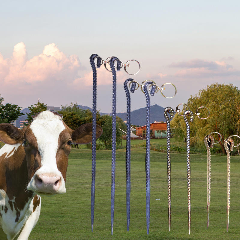 Barre à nervures en acier au carbone galvanisé à chaud de 40/50/60/70 cm de long, goujon pour bétail avec anneau variable amovible