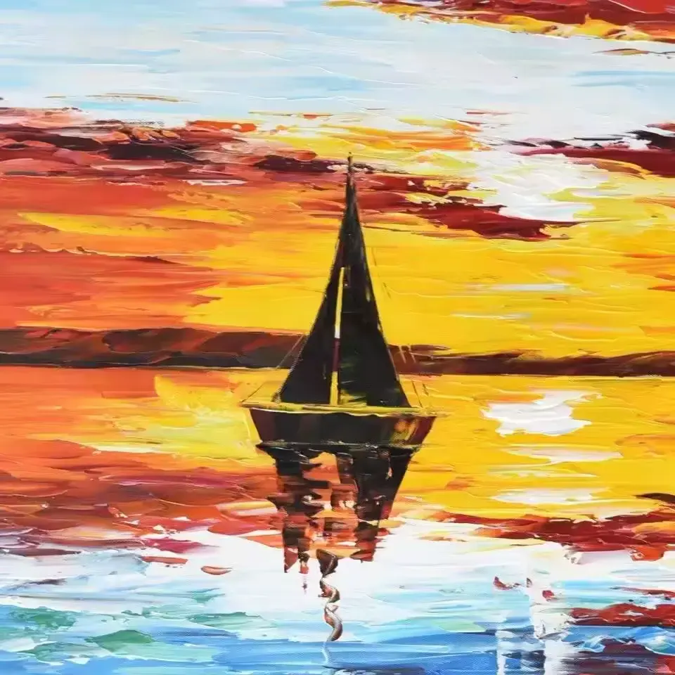 40*60cm Coucher de soleil abstrait de haute qualité Peinture à l'huile au couteau pour la décoration