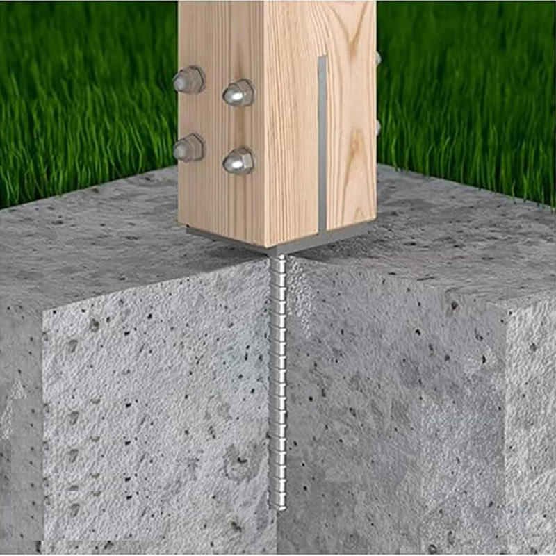 40*7*7 cm Galvanized Post Base Cover Plate with Rebar Adjustable Pack Concrete Anchor for Fence Pergola Deck Repair Broken Wood