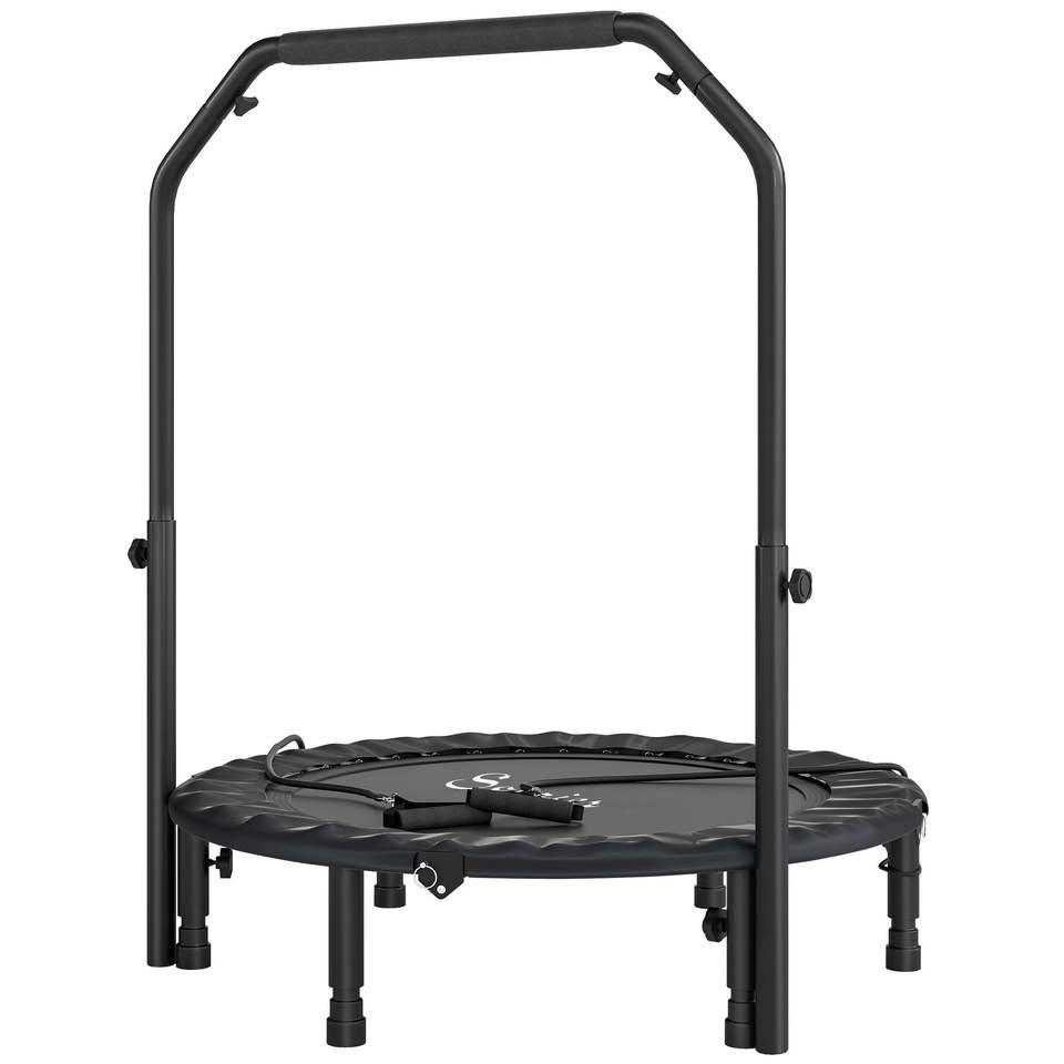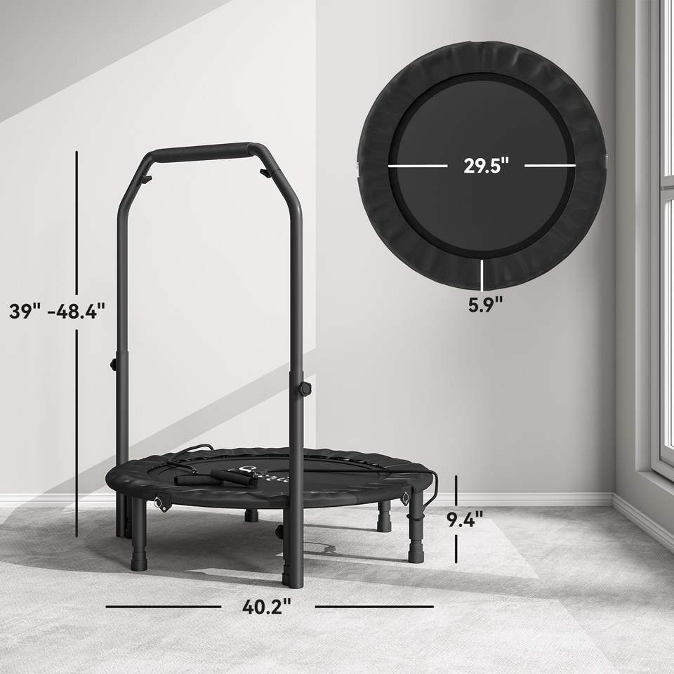 Mini trampoline pliable noir de 40 pouces avec poignée en mousse réglable, trampoline rebondissant conçu pour les adultes