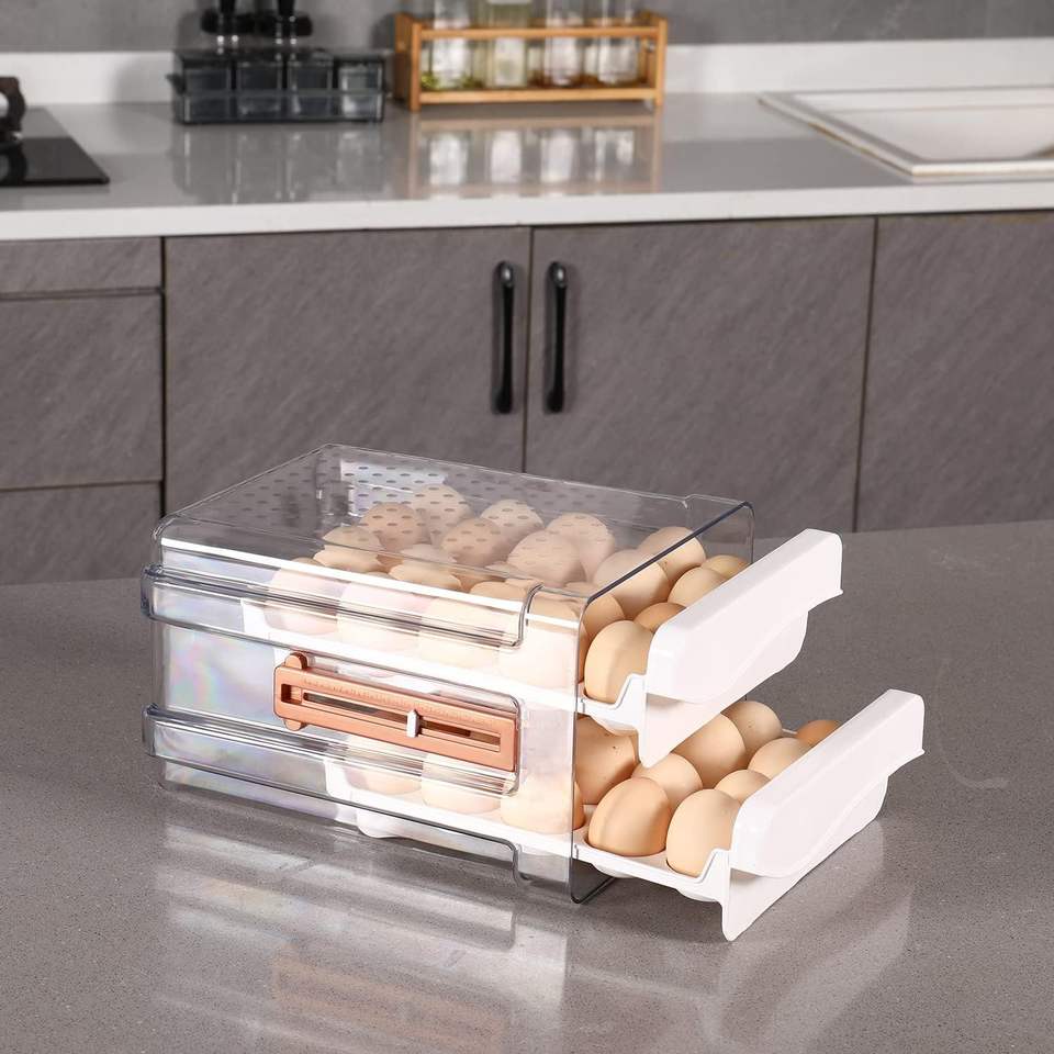 Conteneur de rangement pour œufs transparent de 40 œufs, 2 tiroirs, pour la conservation des œufs de poule au réfrigérateur
