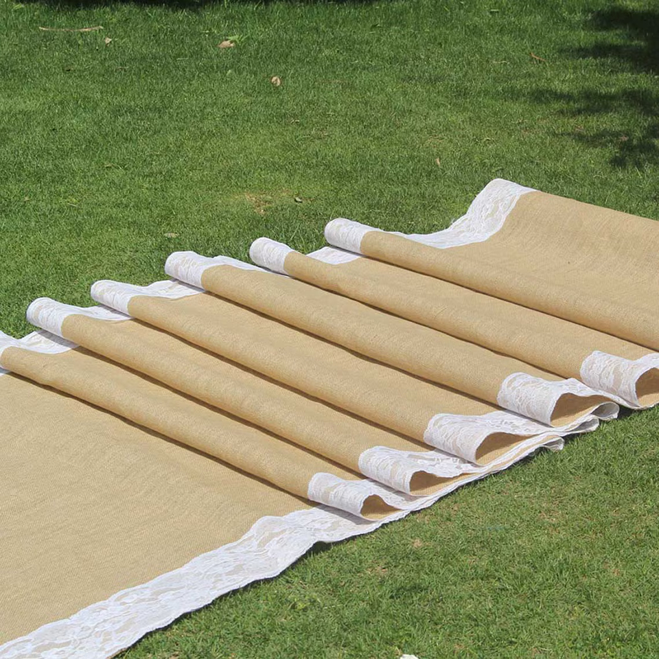 Tapis de couloir de mariage en toile de jute naturelle de 40 pouces avec dentelle pour un thème vintage