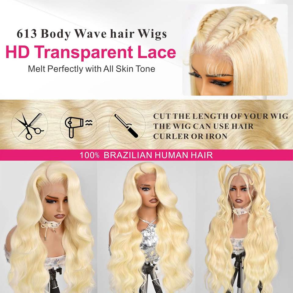 40 pouces brut vietnamien vierge 613 13x6 HD Glueless 360 Lace Remy Double Drawn Baby Hair Frontal Lace Wig